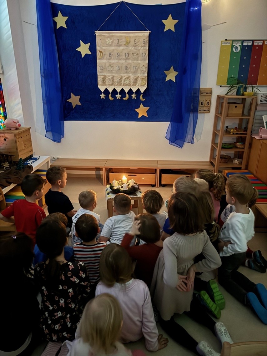 In der Adventzeit beginnen wir jeden Morgen mit einem besonders stimmungsvollen Ritual. Gemeinsam singen wir festliche Lieder, lauschen kleinen Adventgeschichten und entzünden die Kerzen am leuchtenden Adventkranz. So tauchen wir jeden Tag ein Stück mehr in die zauberhafte Atmosphäre dieser besonderen Zeit ein.