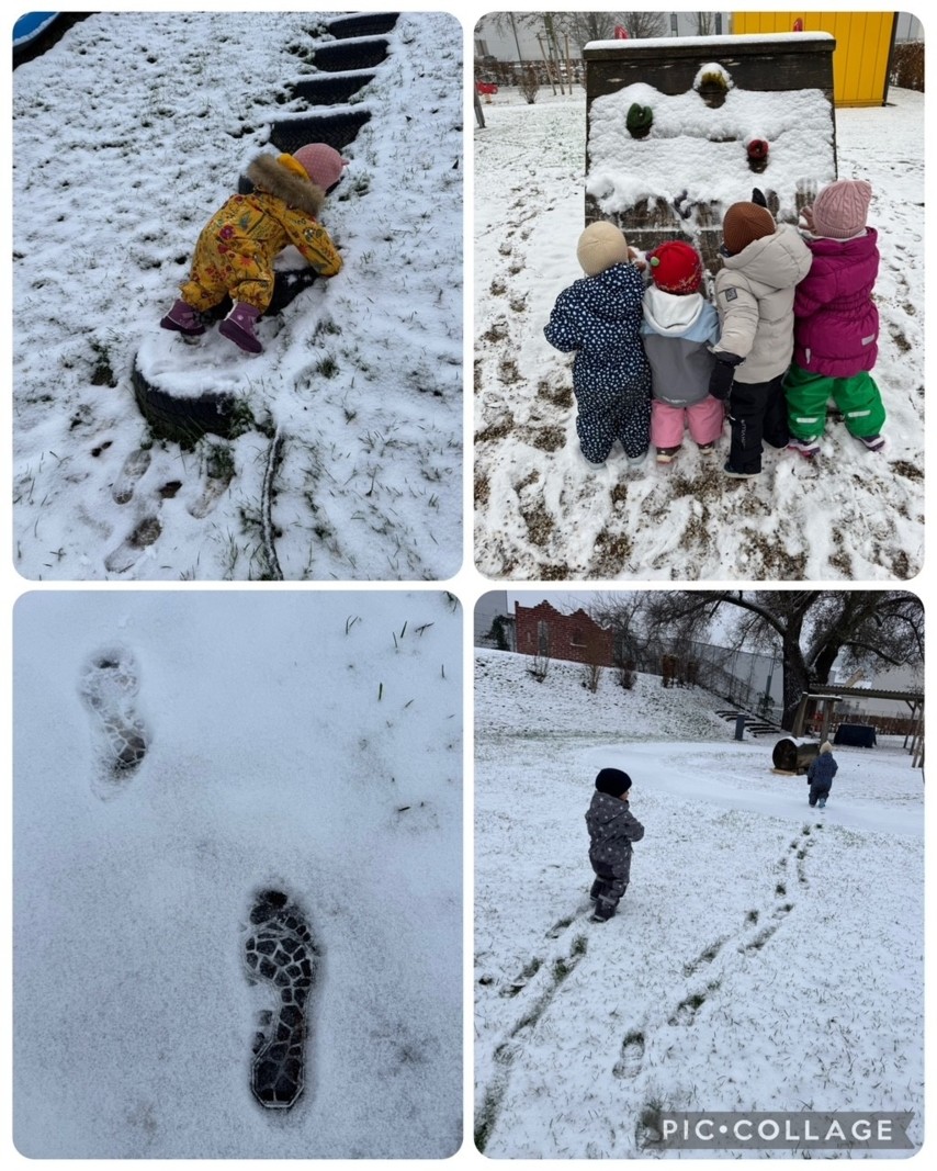 Der erste Schnee hat unsere Kinder heute wie ein Magnet nach draußen gezogen! Neugierig und voller Entdeckungsfreude haben sie die weiße Welt erkundet: Spuren wurden im frischen Schnee hinterlassen und kleine Hände haben kalte Eiskristalle ertastet