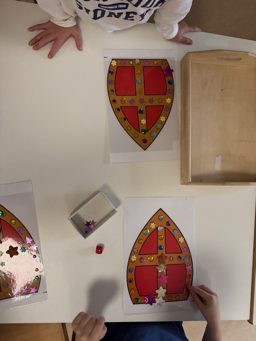 Bei diesem Würfelspiel gestalten die Kinder Schritt für Schritt die Mitra des heiligen Nikolaus. Mit jedem Wurf dürfen sie einen Glitzerstein ergänzen und bringen so spielerisch Zählen, Zuordnen und kreatives Gestalten zusammen.